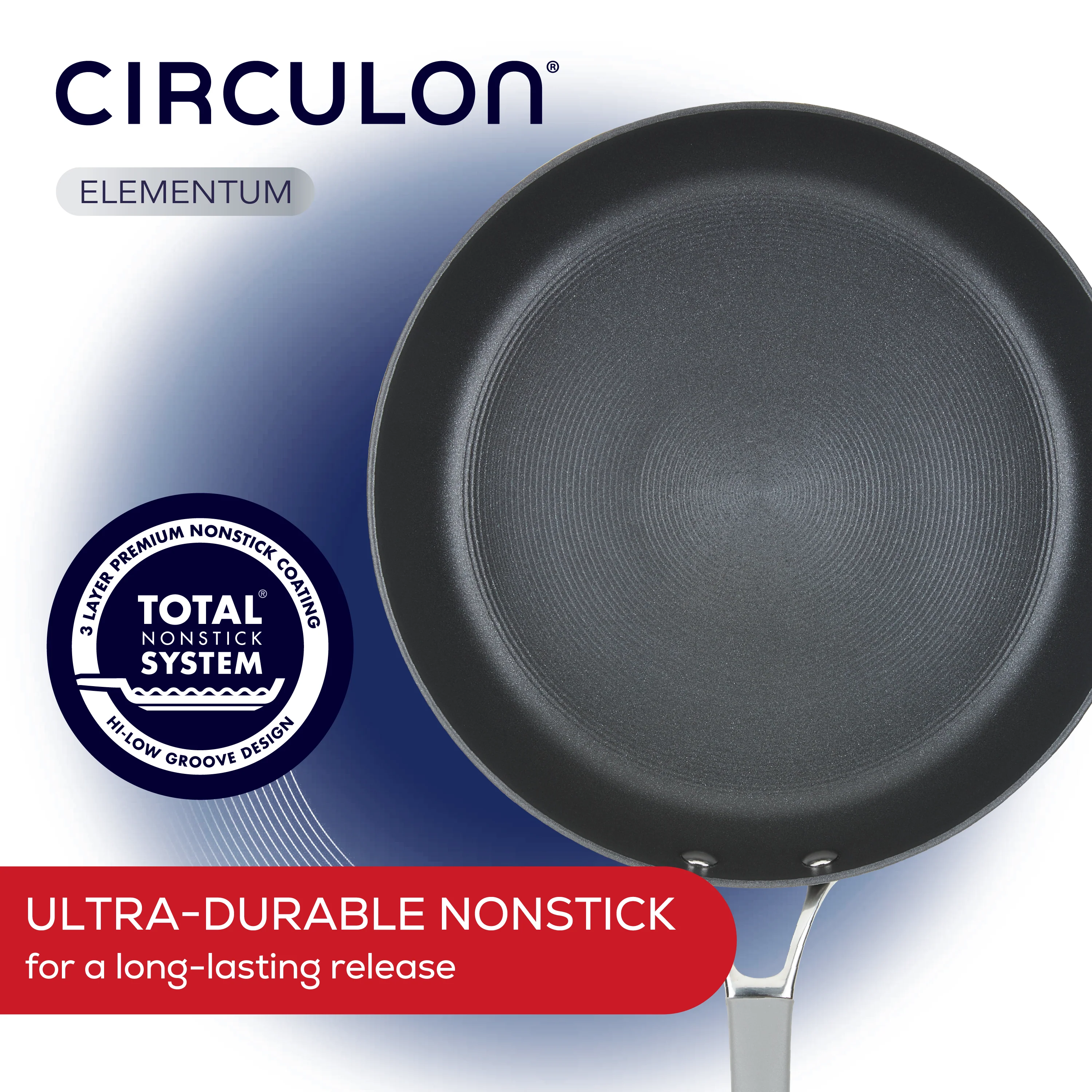 For an easy one-pan-meal solution that helps you cook smarter, reach for this versatile large frying pan crafted from super-tough, hard-anodized aluminum that's twice as strong as stainless steel for lasting cooking enjoyment. The deep pan boasts the TOTAL Nonstick System of raised circles and triple layer, premium quality nonstick for long-lasting food release and easy cleanup. Higher skillet walls transfer heat evenly and a dual-riveted stainless steel handle with a sleek silicone grip provides a solid, comfortable hold while cooking and serving. Oven safe to 400°F.