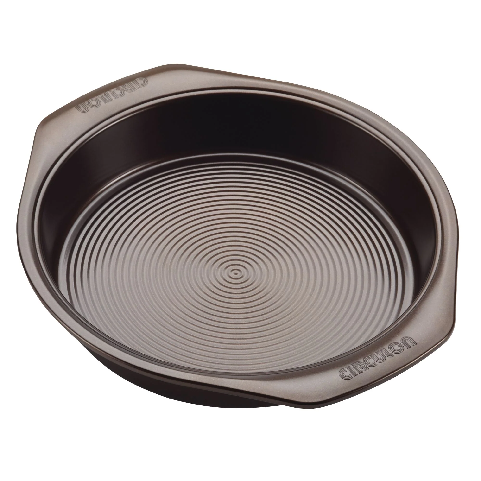 Heavy gauge steel baking pans provide even heating with rolled pan edges that add extra strength and long-lasting warp resistance. Pan interiors feature raised circles with premium nonstick for an easy-cleaning baking surface with exceptional food release. Oven safe to 450°F.